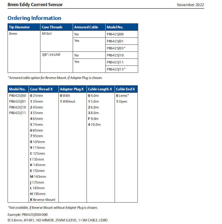 8mm Eddy Current Sensor Non-contact sensor designed for critical turbomachinery applications such as steam, gas and hydro turbines, compressors, gearboxes, pumps and fans to measure radial and axial shaft dynamic displacement; position, eccentricity and speed.
